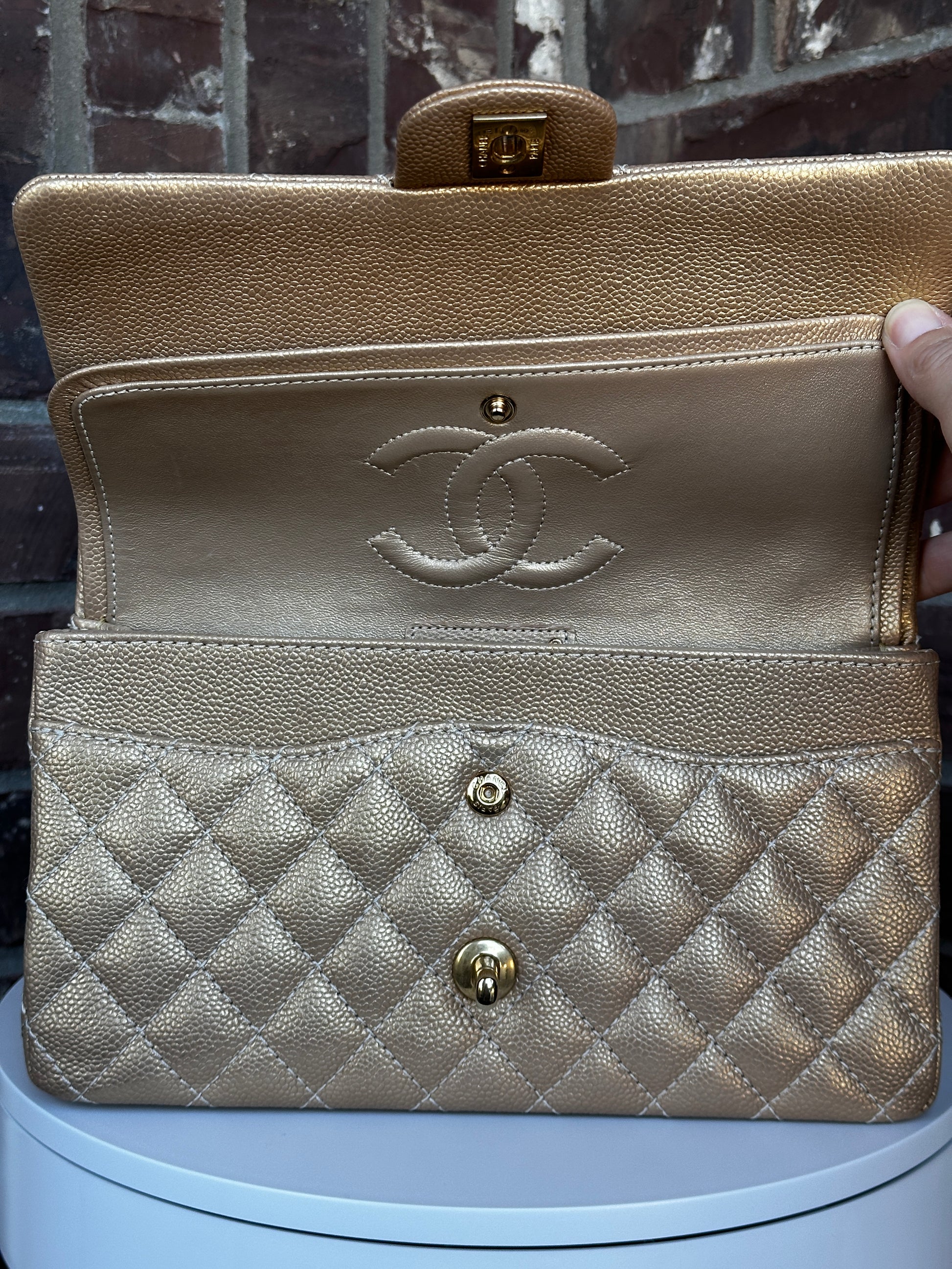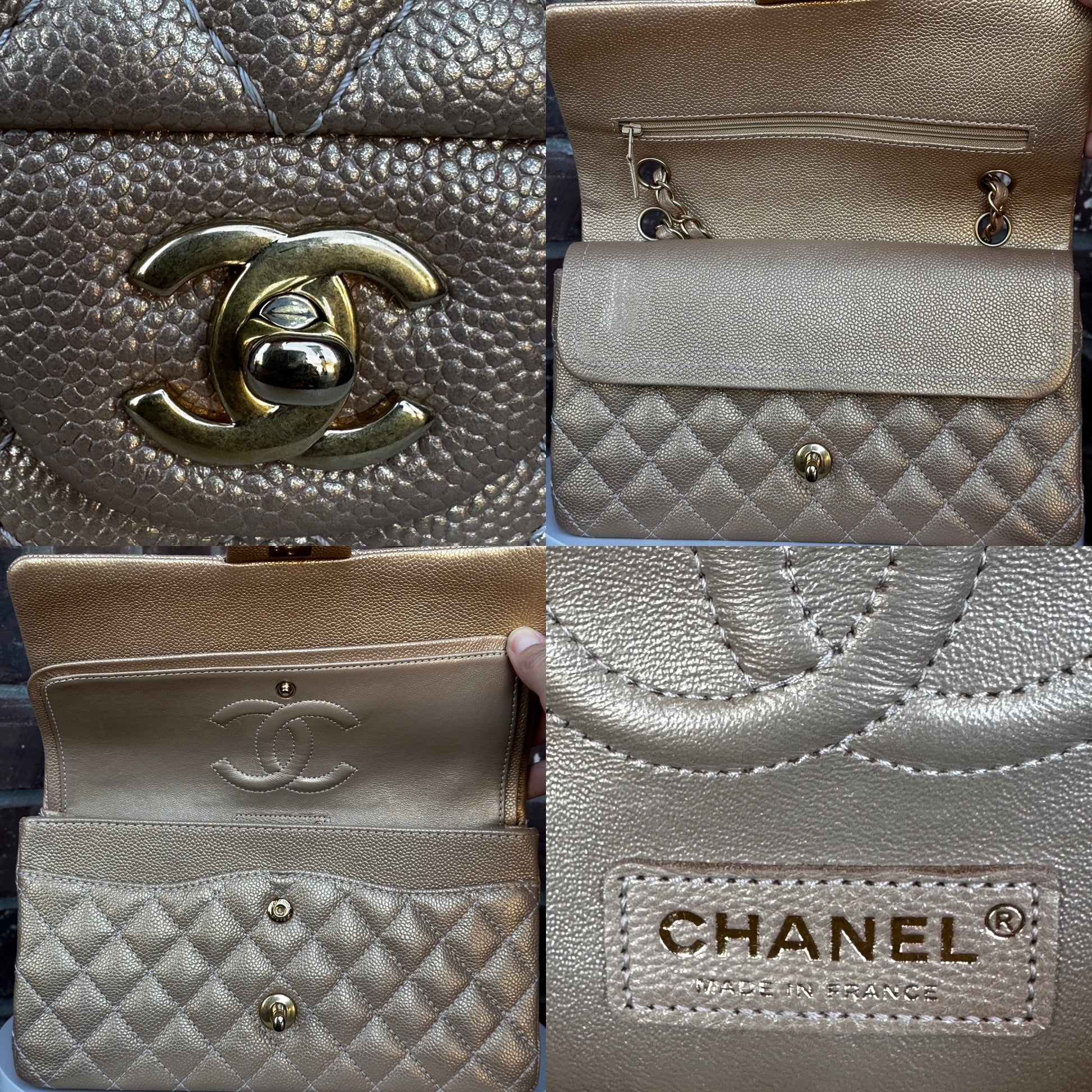 Chanel Classic Double Flap Iridescent Quilted Caviar Medium 42278