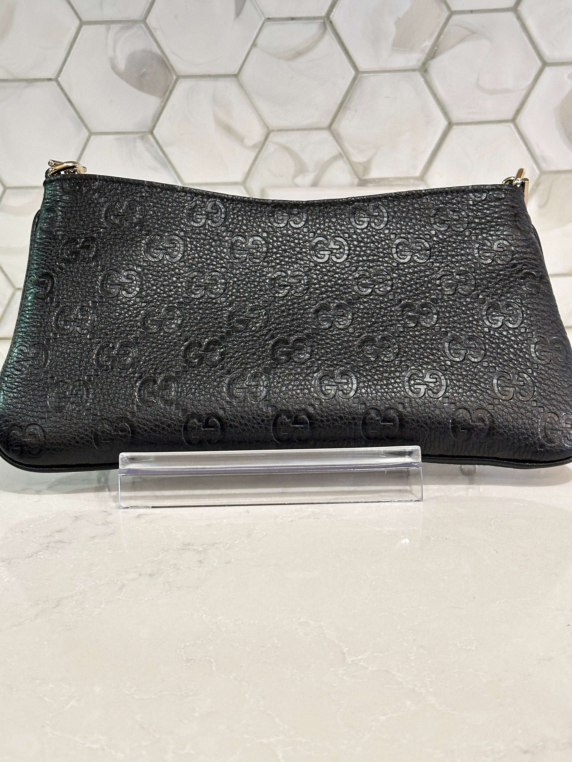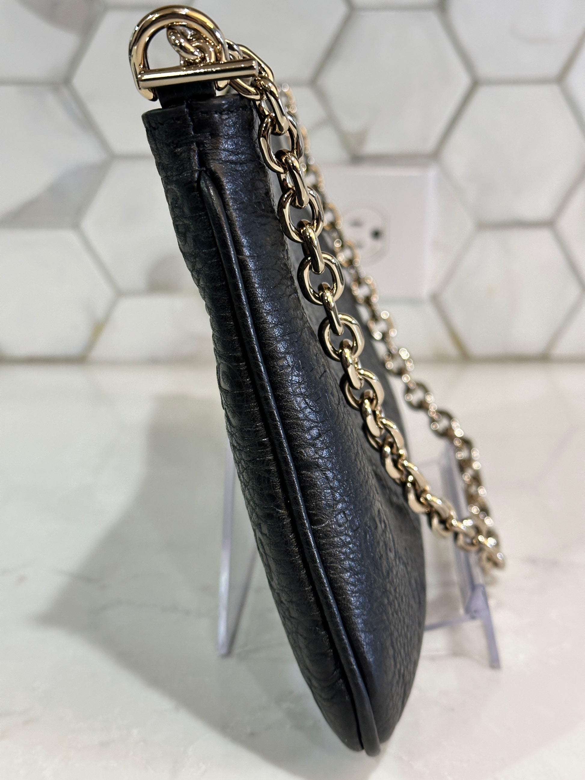 Gucci Emblem Chain Shoulder Bag Guccissima Leather Medium 61114